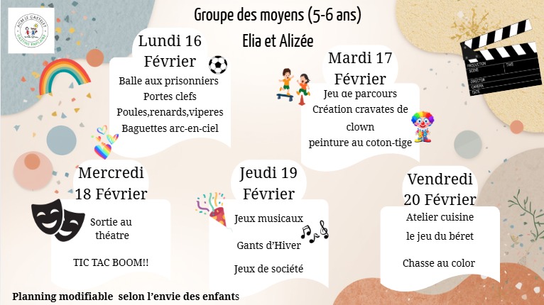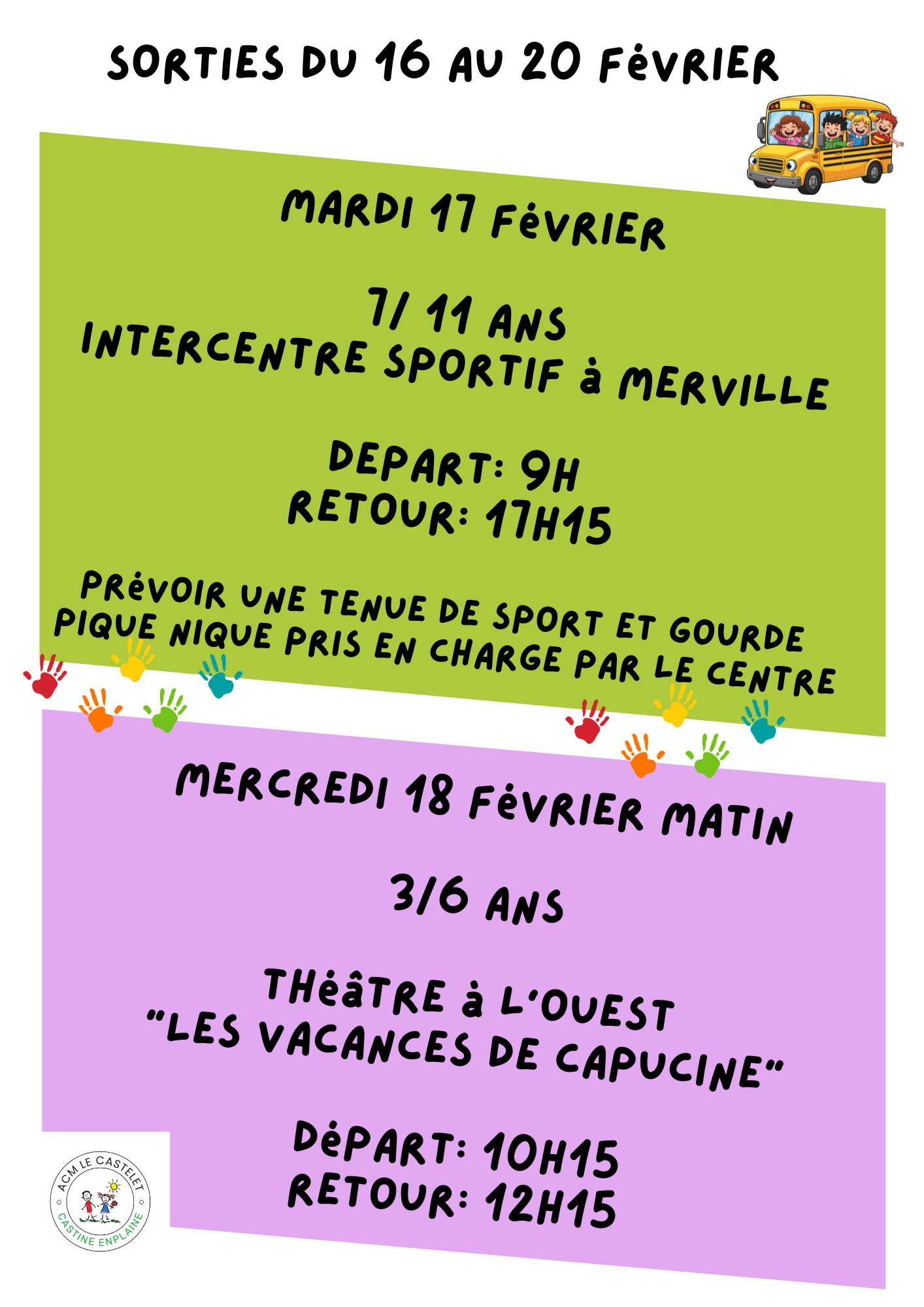 Pendant les vacances scolaires, les inscriptions se font obligatoirement à la journée avec repas et pour 3 jours minimum par semaine.