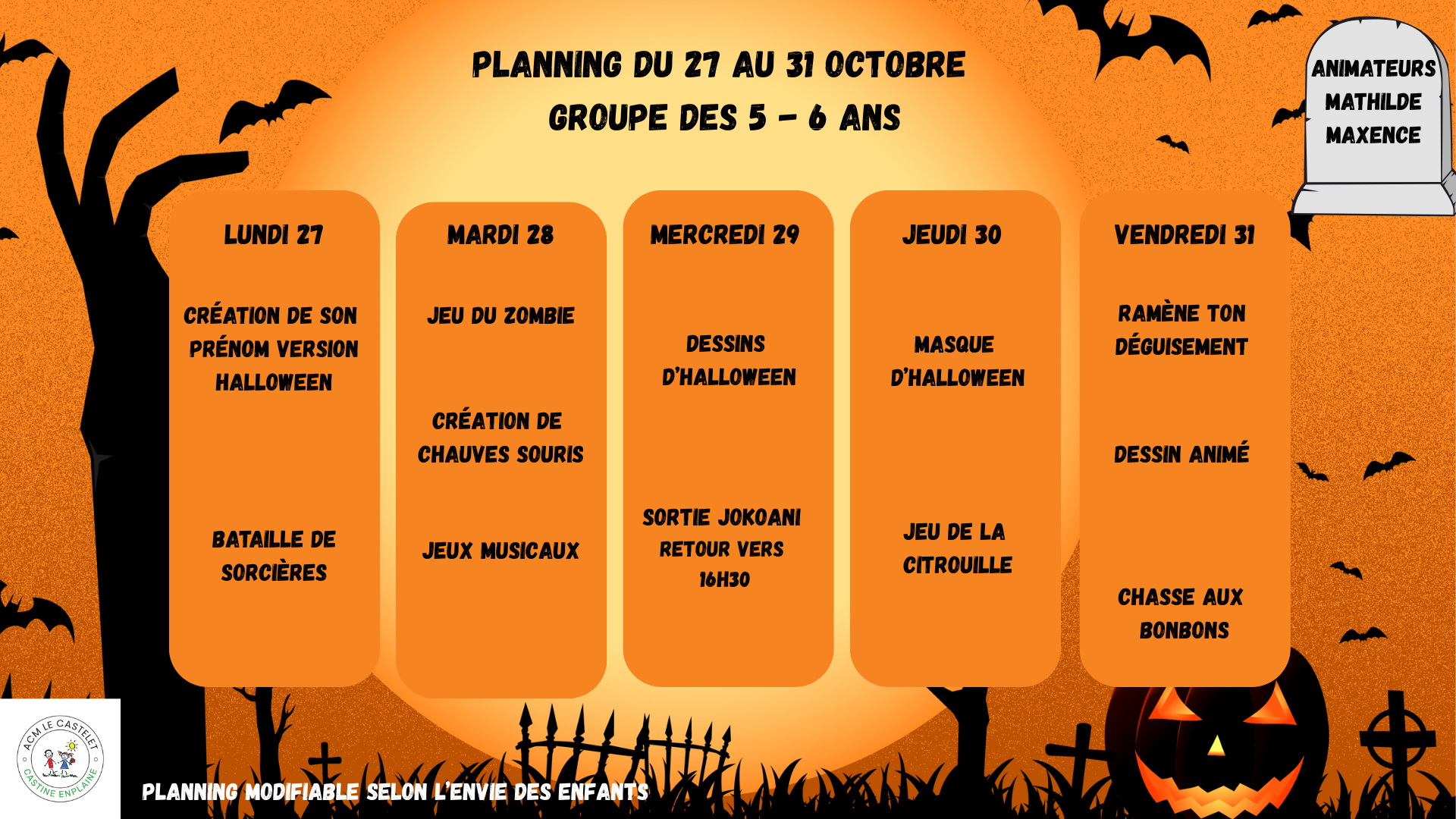 Programme des vacances de la Toussaint 2025