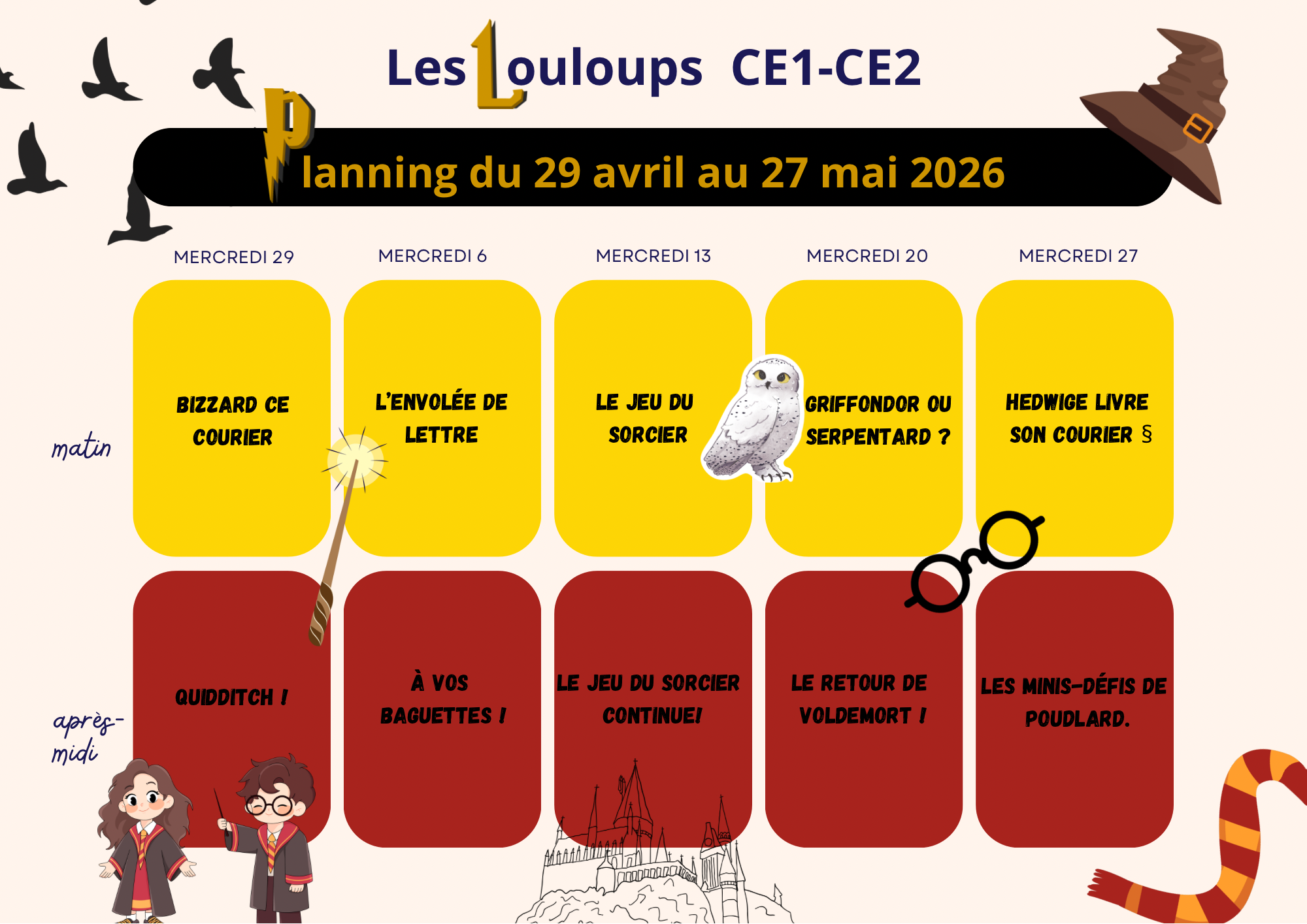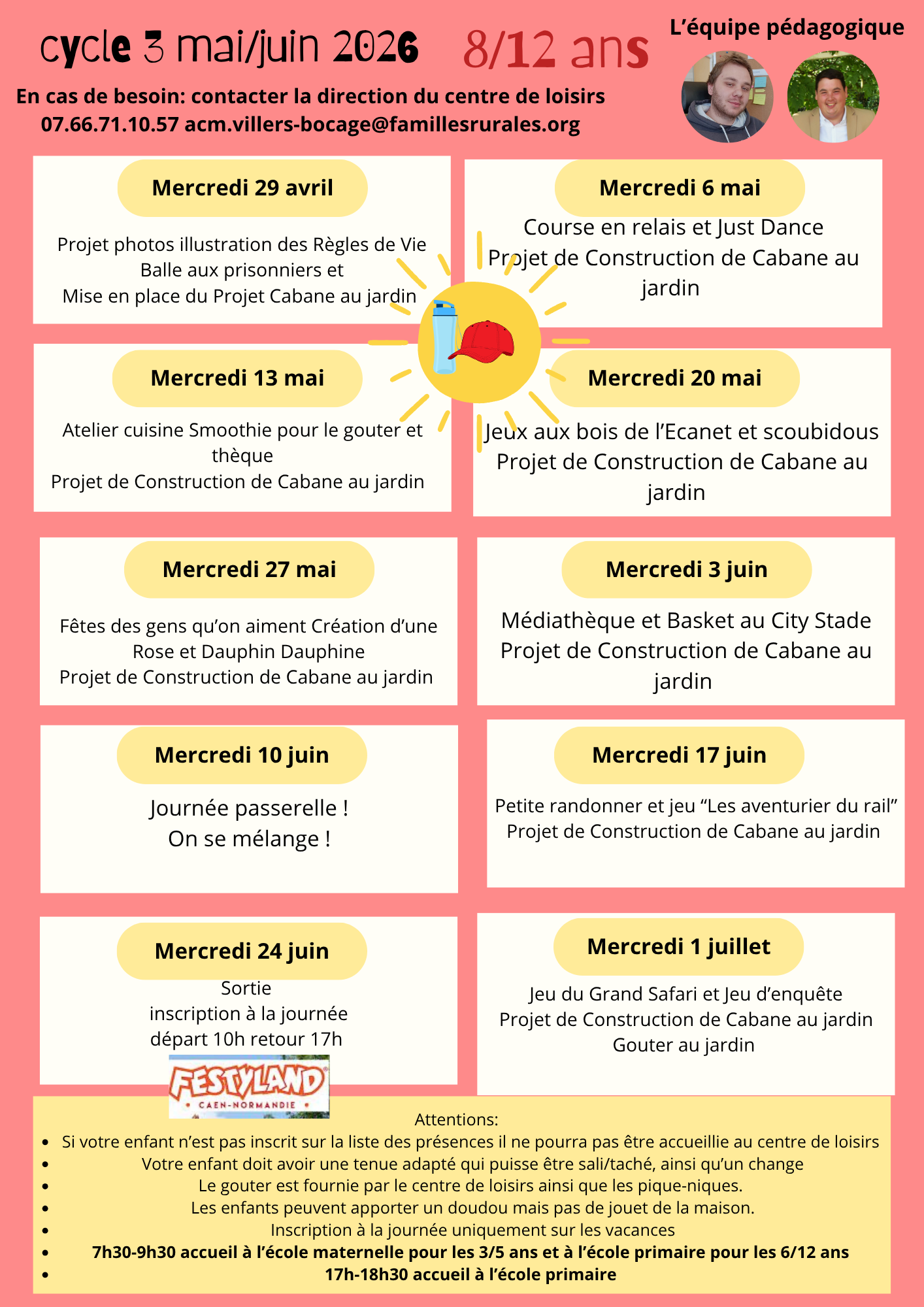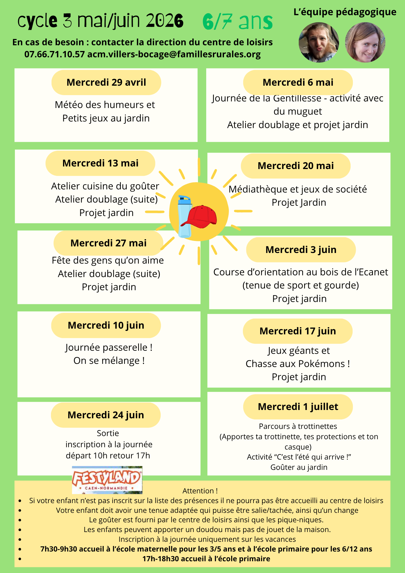 PLANNING DES MERCREDIS DE MAI ET JUIN SUR LE CENTRE DE VILLERS-BOCAGE
