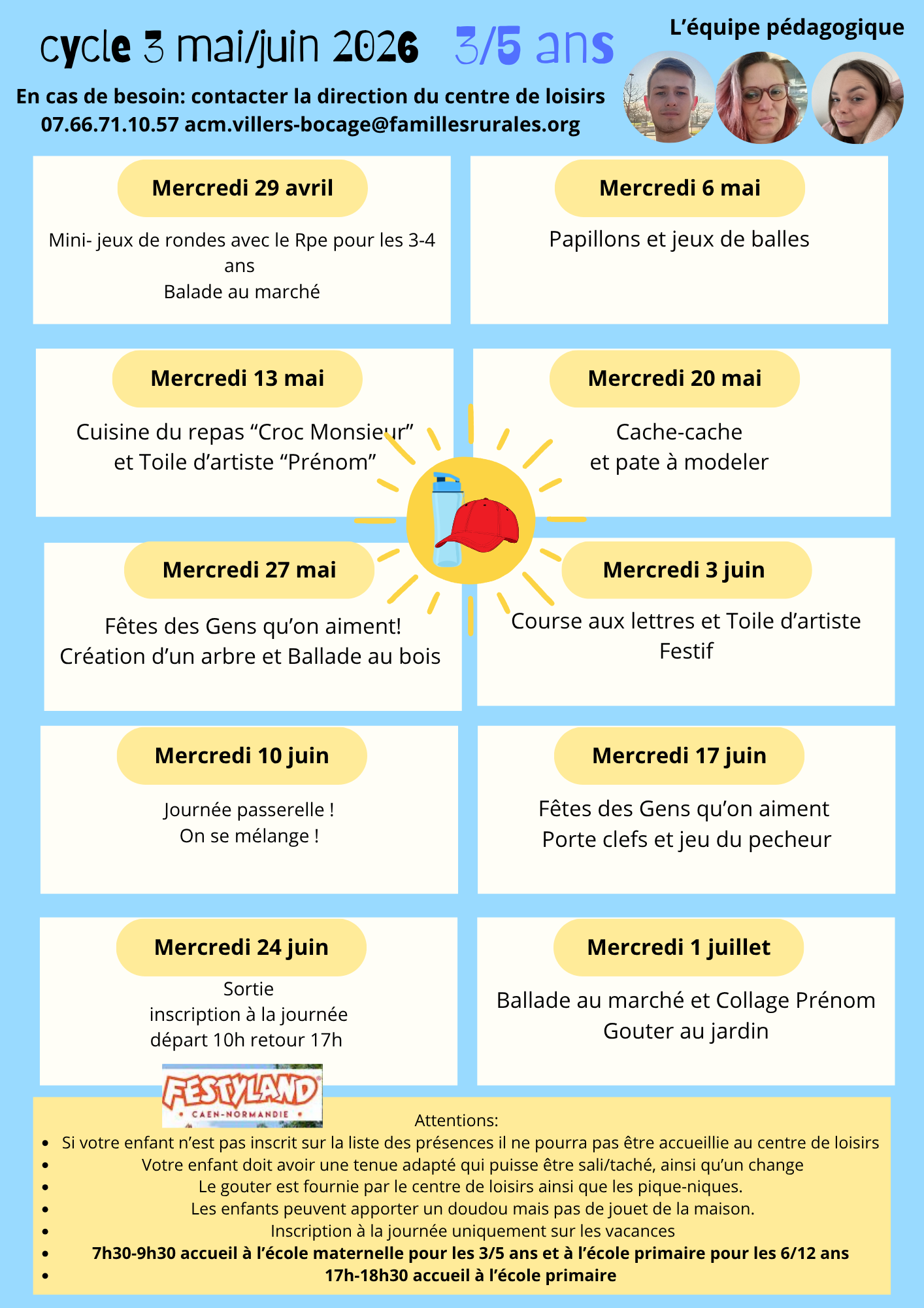 PLANNING DES VACANCES D'ETE 2026 SUR LE CENTRE DE VILLERS-BOCAGEA venir...