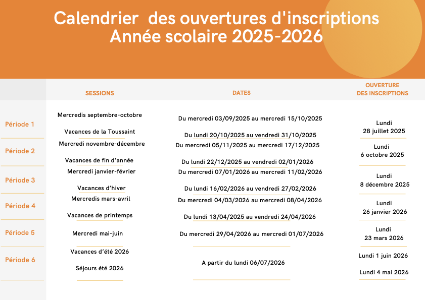 CALENDRIER DES INSCRIPTIONS 2025-2026