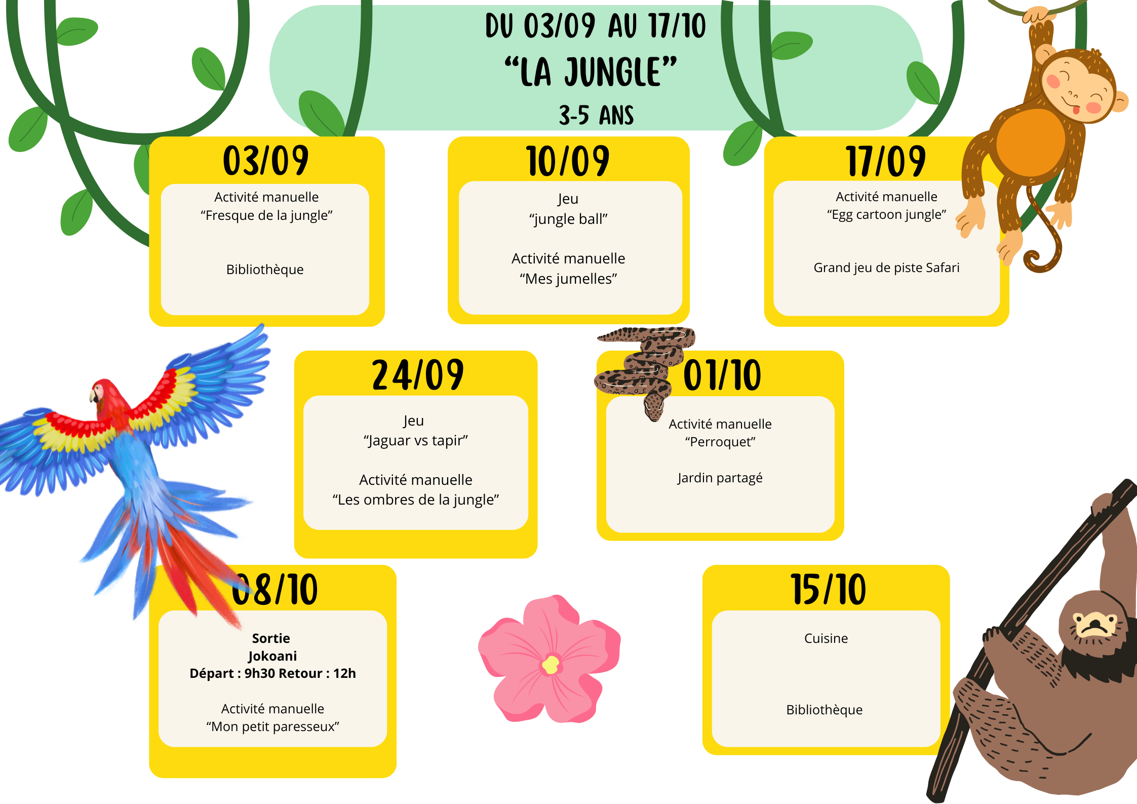 Pendant les vacances scolaires, les inscriptions se font obligatoirement à la journée avec repas et pour 3 jours minimum par semaine.