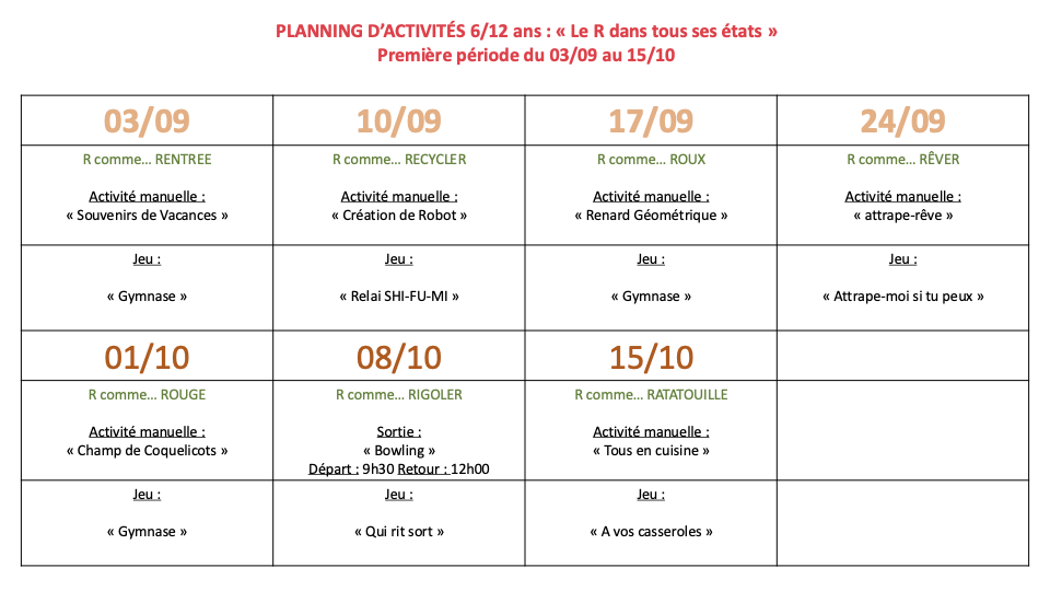 PLANNING MERCREDIS SEPTEMBRE/OCTOBRE VILLERS-BOCAGE